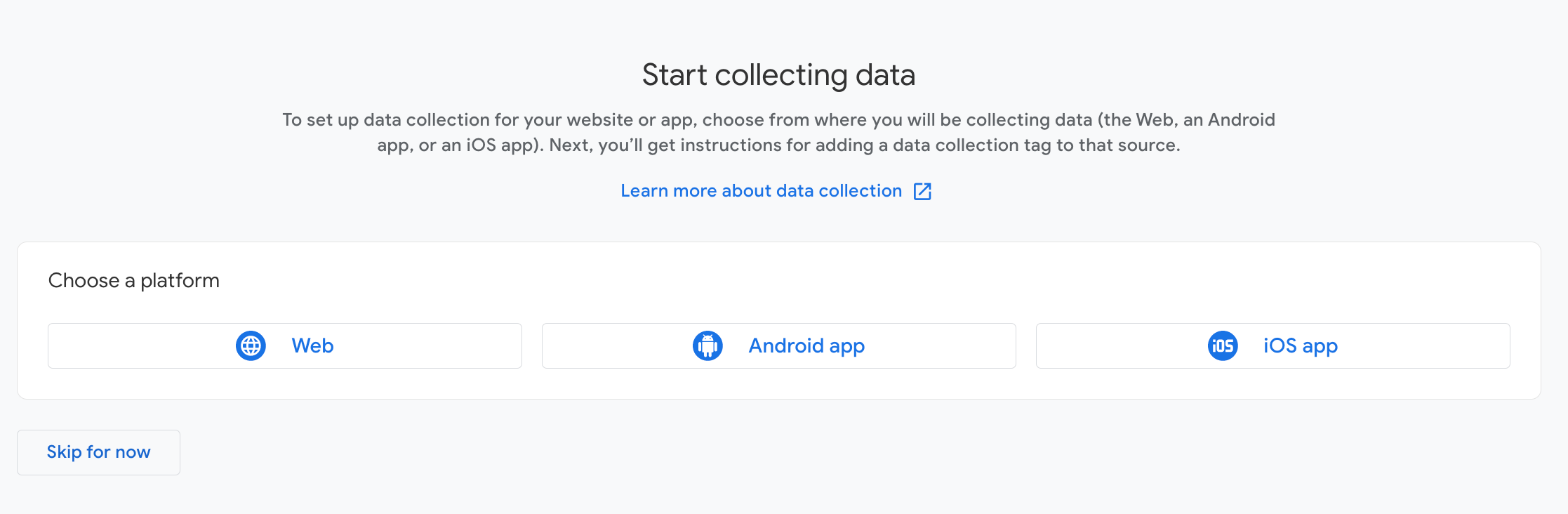 Since you will want to collect data from your website, select the ‘Web’ option.